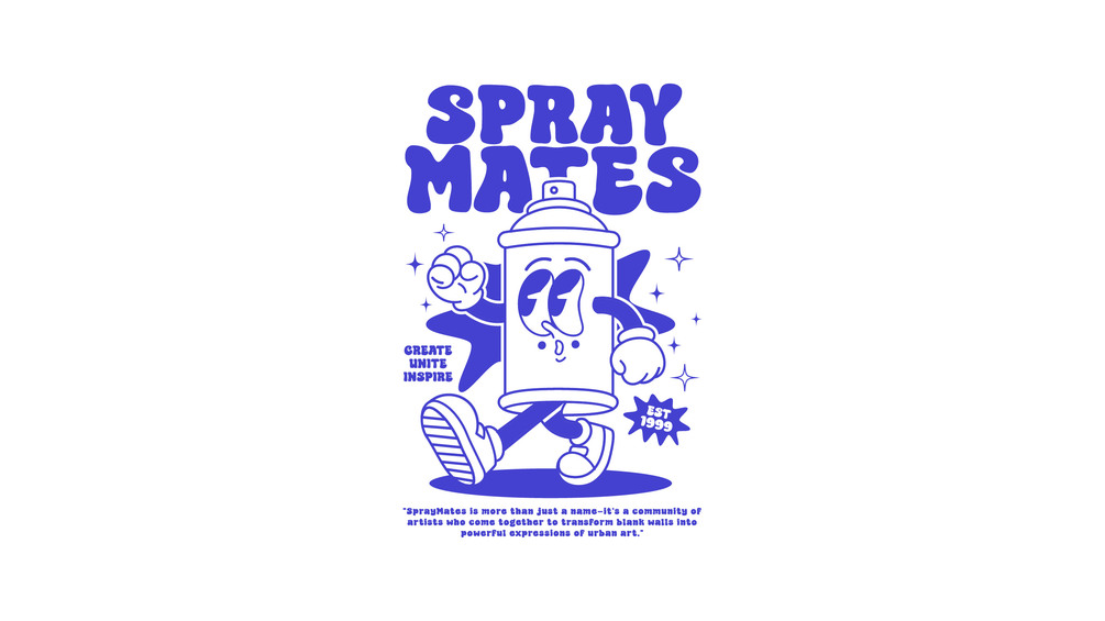 'Spray Mates' design captures the essence of urban creativity and street art culture. Featuring a cool character strolling with a can of spray paint, this design oozes confidence and style. The vibrant blue tones inject energy and attitude, giving the design a modern, edgy vibe. 'Spray Mates' embodies the spirit of artistic expression, freedom, and the boldness of self-expression through spray paint. Perfect for those who embrace the power of creativity and individuality in their daily life.